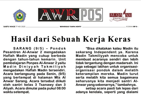 SULE BADALI SUSU PUTIH SARANG – Rasulullah menganjurkan umatnya untuk meminum susu putih pada awal tahun baru hijriyah. Acara yang diadakan oleh OSIS MA Al Anwar kemarin (12/09) guna memperingati 1 Muharrom 1440 H berbeda dengan tahun-tahun sebelumnya. Pada tahun ini untuk menjalankan sunah Rasul bukan susu putih yang dibagikan melainkan sule (susu kedelai). Pembina…